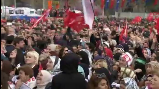 "Ana muhalefetin başının SSK`da genel müdür olduğu zaman hastanelerin halini biliyorsunuz değil mi? Bu adama 5 tane keçi ver hepsini kaybeder. Lüleburgaz`da bir yavrumuzun kolunu kesmişlerdir. Rahmetli Savaş Ay soruyordu, cevap veremiyordu. Bir kasetle geldi partisinin başına şimdi oradan yalan makinası çalışıyor. Söyledikleri yalanlara bak. Ben başkan olursam lokantaları kapatacakmışım. Yahu dünyanın hangi başkanlık sisteminde böyle bir şey var. Muhtarlıklar kapatılacakmış. Muhtarlık seçimle geliyor, bunların yasal, anayasal teminatı var. Kalkıp da Cumhurbaşkanı yasalarla gelmiş olan herhangi bir kişiyi görevden alamaz. 50 tane 100 tane 500 tane yardımcı atayacak diyor. Eline diline dursun yahu. Dünyanın neresinde böyle bir uygulama var."