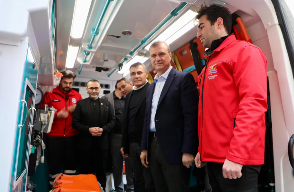 İBB Sağlık İşleri Daire Başkanı Dr. Öğretim Üyesi Önder Yüksel Eryiğit, ambulanslarda tıbbi donanımın yükseldiğini belirterek şöyle konuştu: ‘’Sağlık Bakanlığı'nın mevzuatı gereği ambulanslarda bir değişim süreci yaşadık. Bugün sonucu itibariyle mavi şeritli ambulansların, kırmızı şeritli ambulansa dönüşümü gerçekleşti Büyükçekmece Belediyesi'nde. Bu ne demek? Ambulansların içindeki tıbbi donanım ve ekiplerin standardı değiştirildi aslında. Mavi şeritli ambulanslarla hasta taşırken tıbbi sorumluluk çok alt düzeydeydi ama şu anda mobil sağlık hizmeti diyebileceğimiz kırmızı şeritli ambulansların içerisinde solunum destek cihazından aspiratöre, bunun beraberinde defibrilatör, diğer tüm tıbbi donanım ilaçlar dahil olmak üzere ve bunları kullanmaya yetkin tıbbi personelin de içinde bulunduğu ambulanslardan bahsediyoruz. Dolayısıyla hasta güvenliği açısından, hastaların güvenli bir şekilde gitmesi gereken yere ulaşabilmesi için kıymetli bir hizmet diye düşünüyorum. Büyükçekmece Belediye’mize hayırlı olsun.’’