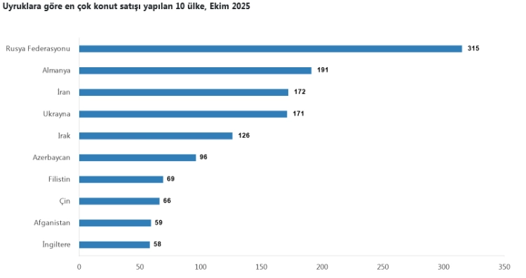 Ülke uyruklarına göre ise 315 konutla Rusya Federasyonu vatandaşları ilk sırada yer aldı; onları Almanya (191) ve İran (172) vatandaşları izledi.