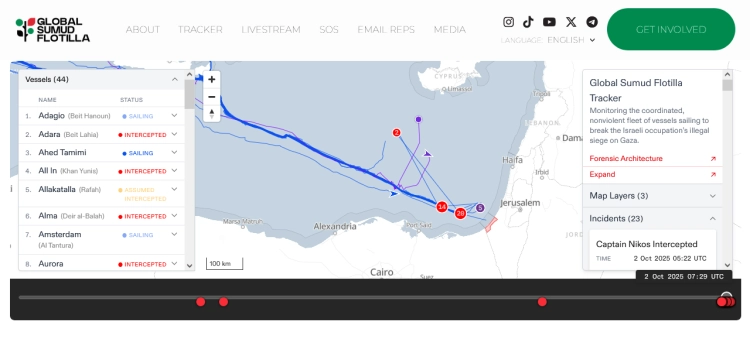 İsveçli iklim aktivisti Greta Thunberg’in de aralarında bulunduğu onlarca aktivist gözaltına alındı. Filonun Türkiye Delegasyonu’na göre, 28 Türk aktivist de alıkonulanlar arasında. Mikeno gemisinde yer alan Türk aktivist Muhammed Huzeyfe Küçükalptekin’in durumu belirsiz; geminin İsrail tarafından durdurulup durdurulmadığı henüz netleşmedi.