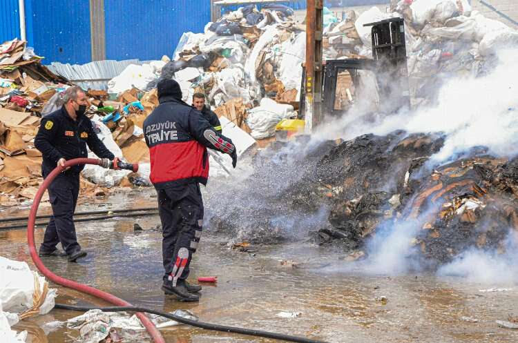 Bilecik’in Bozüyük ilçesinde bir geri dönüşüm tesisi depo alanında çıkan yangın büyümeden itfaiye ekiplerince söndürüldü. Yangında bir işçi dumandan etkilenerek hastaneye kaldırıldı.