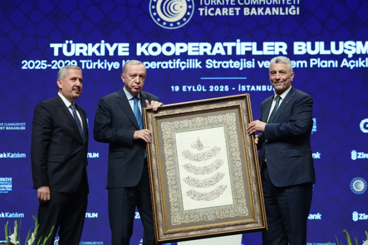 “6,5 milyonu aşkın ortağı olan 62 bin kooperatifimiz var; bu, ekonomik hayatımız için kıymetli bir kazanım" diyen Cumhurbaşkanı Erdoğan, "AB’de 165 milyonu aşkın ortağı ve 250 bin kooperatif varken, bizde arzu edilen seviyede değiliz. Kooperatifler, tarımdan sanayiye, kadın girişimciliğinden enerjiye kadar yerel kalkınmanın temel aktörü hâline geldi. Son yıllarda dünyada da ön plana çıkıyorlar” diye konuştu.