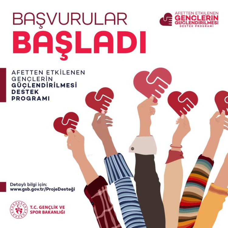 Gençlik ve Spor Bakanlığı, Afetten Etkilenen 11 ilde Gençlerin Güçlendirilmesi Destek Programı kapsamında hazırlanacak projelere asgari 600 bin TL, azami 1 milyon TL nakdi destek sağlayacak.