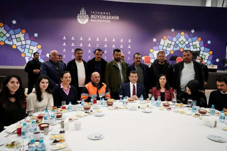 Ramazan ayının yardımlaşmanın, dayanışmanın, gönül birliğine ulaşmanın ayı olduğunu vurgulayan İmamoğlu, “Bu akşam, özellikle kış aylarında yoğun hizmetleriyle bizlerle bir arada olan, çok büyük çabayla insanların güvenliğini, sağlığını tehlike altına atmadan onların hizmetine koşan bizim kar, kış, soğuk demeden büyük hizmetlerini ortaya koyan çalışma arkadaşlarımla iftar açmayı arzu etmiştim. Tabii sayısı oldukça fazla. Sizlerle bir aradayız. Özellikle bu akşam, 86 bin çalışanımıza konuşuyor gibi konuşuyorum ama özellikle kış çalışmalarına emek veren bütün yol arkadaşlarıma, güzel emekleri için 16 milyon İstanbullu adına teşekkür ediyorum” dedi.