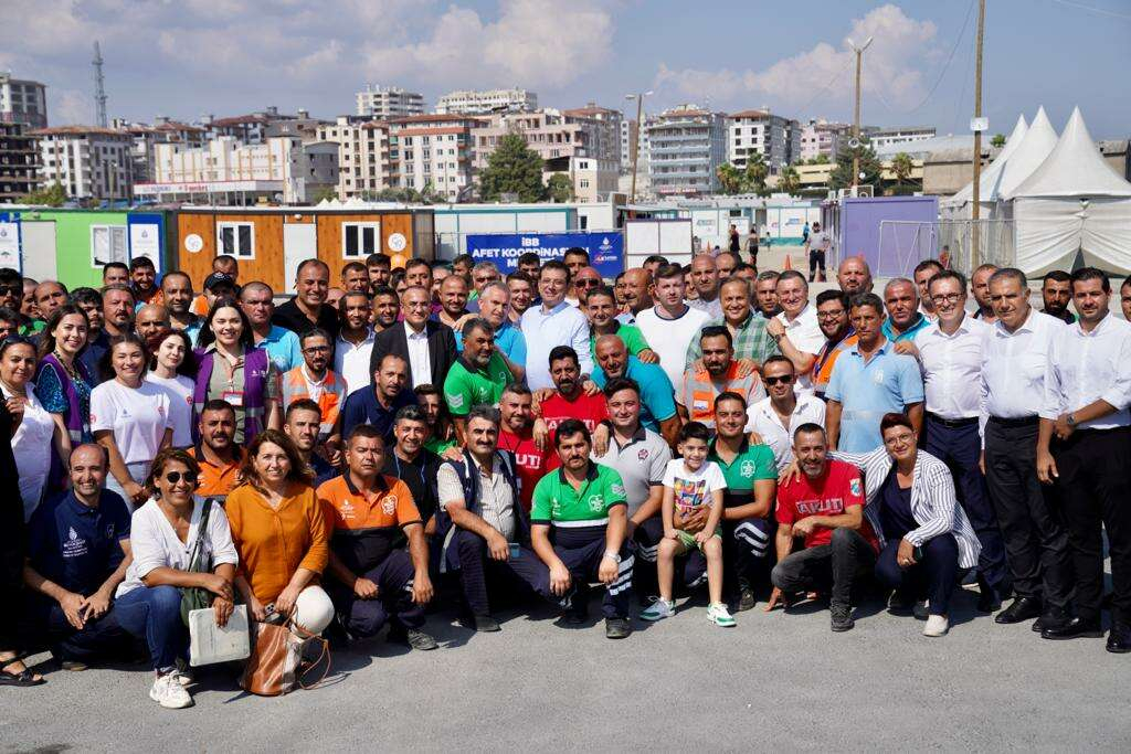 İmamoğlu’nun Hatay’daki ikinci durağı, “KİPTAŞ Antakya Geçici Barınma Alanı Hatay Büyükşehir Belediyesi’ne Teslimi Töreni” oldu. Törende, sırasıyla; KİPTAŞ Genel Müdür Ali Kurt, Savaş ve İmamoğlu birer konuşma yaptı. 6 Şubat depremlerinin ardından AFAD’ın İBB’yi ağır hasar alan Hatay ile eşleştirdiğini hatırlatan İmamoğlu, “O günden, o andan itibaren burada bulunduk. Hatay'ın yaralarının hızla sarılması için, şehrin yeniden yapılanmasına varacak olan sürece kadar bütün aşamaları tek tek, bilimsel, teknik açıdan inceleyerek, Hatay Büyükşehir Belediyemiz ve Sayın Başkanımızla iş birliği yaparak, süreci takip ettik ve koordine ettik. Çok büyük acıların yaşandığı bu süreçte, vatandaşlarımıza destek olabilmek için özveriyle, sorumlulukla çalıştığımız gibi, bundan sonra da çalışmaya devam edeceğiz” dedi.