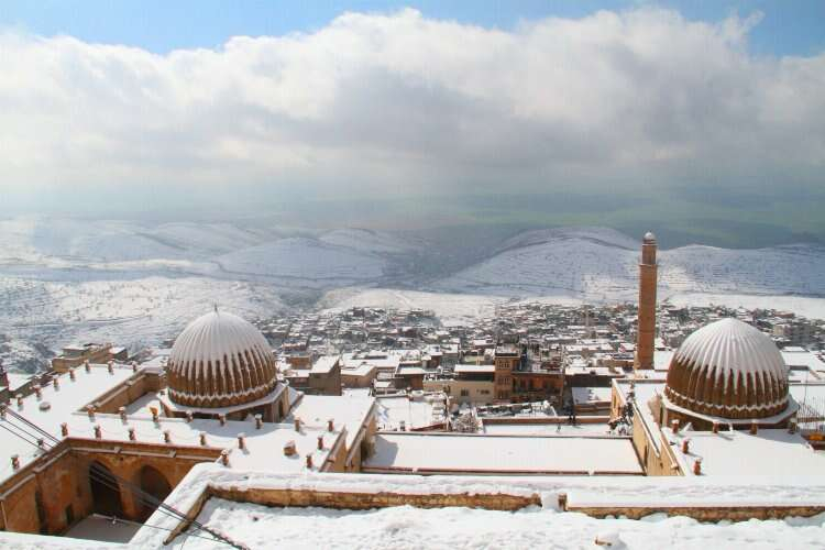 Yoğun kar yağışı nedeniyle Mardin Kalesi ve diğer tarihi yapılar beyaza büründü. Karın etkisiyle çok sayıda cami, medrese, kilise ve manastırın bulunduğu tarihi kentte, seyirlik manzaralar oluştu.