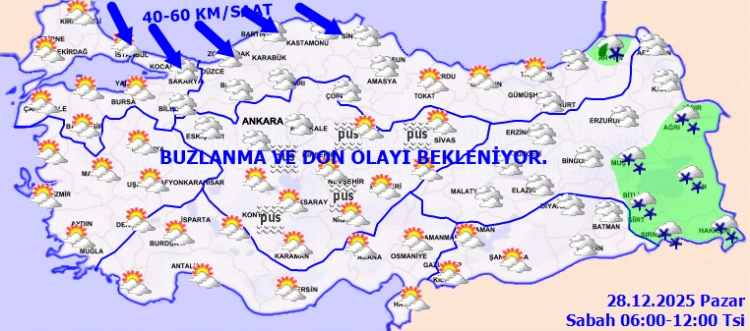 ANKARA (İGFA) - Meteoroloji Genel Müdürlüğü, 28 Aralık Pazar gününe ilişkin hava tahmin raporunu yayımladı.