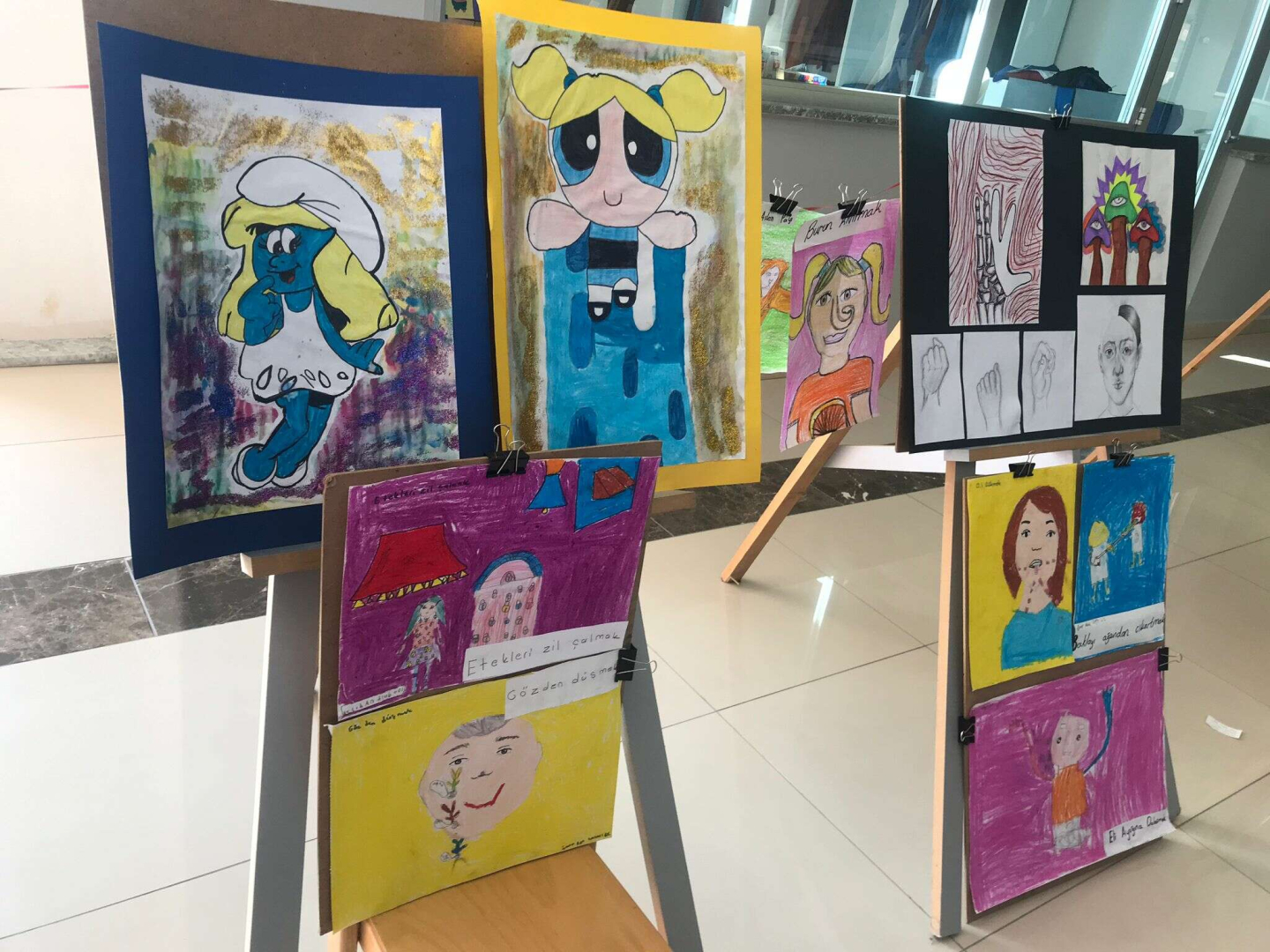 Dönem başından beri öğrencilerin çalışmalarının devam ettiğini belirten Görsel Sanatlar Öğretmeni Tuğçe Eryiğit ise, “Son 2 buçuk ayda daha aktif çalışmalar yaptık. Renk alanı, toz pastel, kolaj ve seramik çalışmalarını birleştirerek karma bir sergi oluşturduk” diye konuştu.