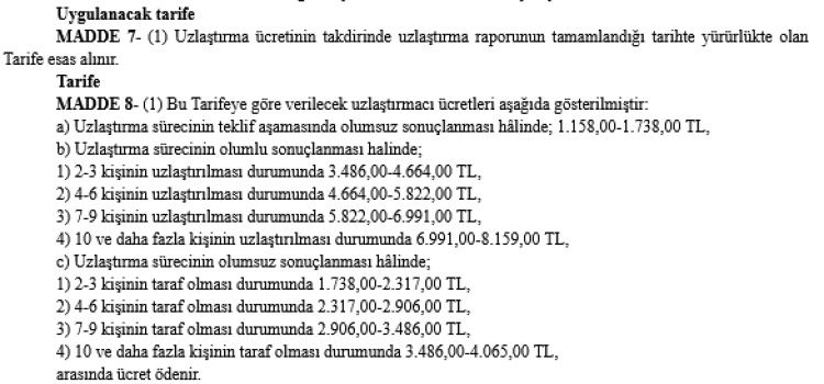 Yeni tarifeye göre uzlaştırmacı ücreti; tarafların sosyal ve ekonomik durumu, uzlaştırmacının sürece katkısı, gösterdiği gayret, taraf sayısı ile uyuşmazlığın kapsam ve niteliği dikkate alınarak belirlenecek. Birden fazla uzlaştırmacının görevlendirildiği dosyalarda ise ücretler eşit şekilde ödenecek.